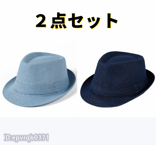 - 2点セット ソフト帽 新品 ジャズハット デニムキャップ 紳士 帽子 中折れハット サイズ 56-58センチ ブルー/ネイビー