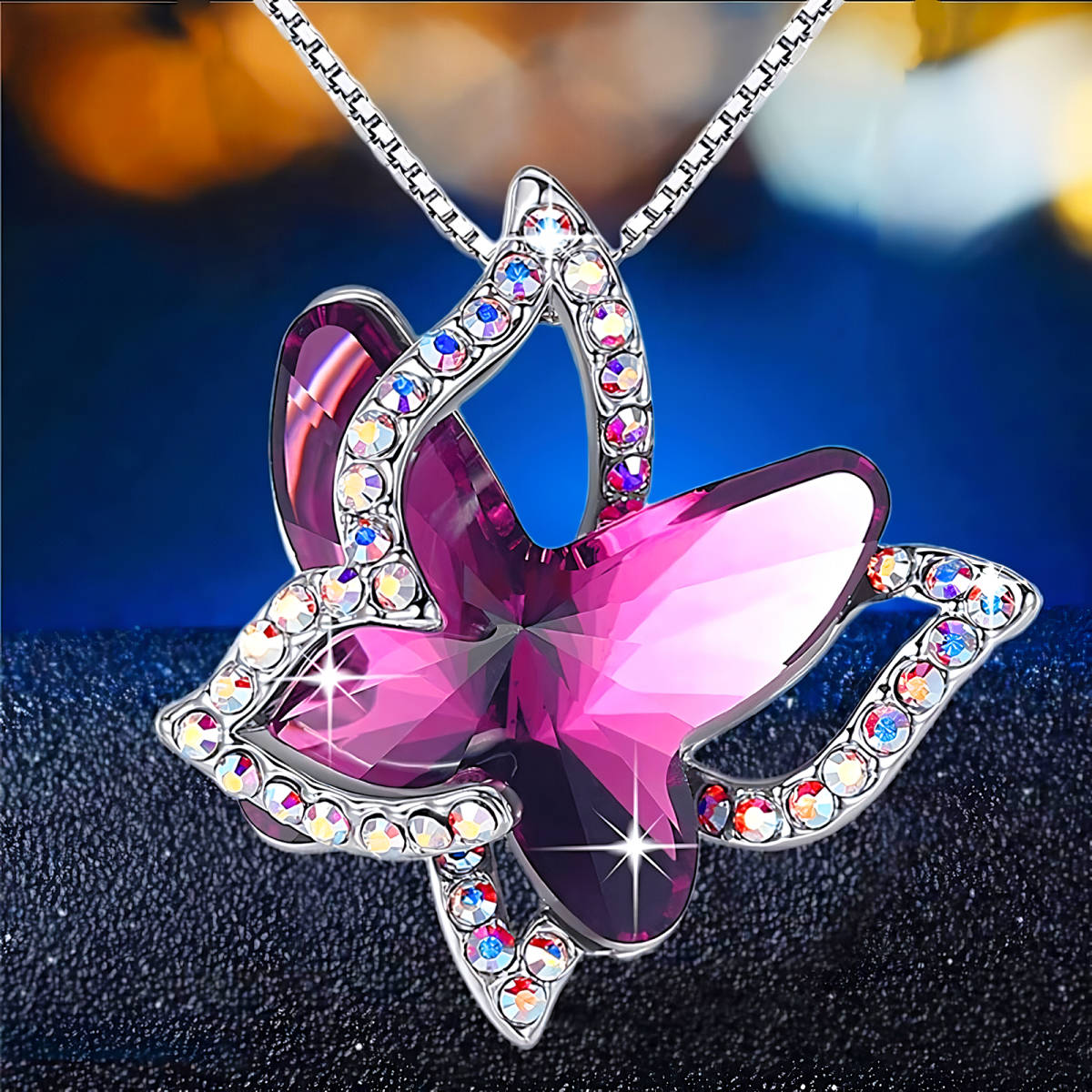 - 新品★送料無料★紫水晶アメジスト蝶 虹ダイヤモンド プラチナ仕上925シルバーネックレス誕生日プレゼント旅行初春連休ギフト国内発送
