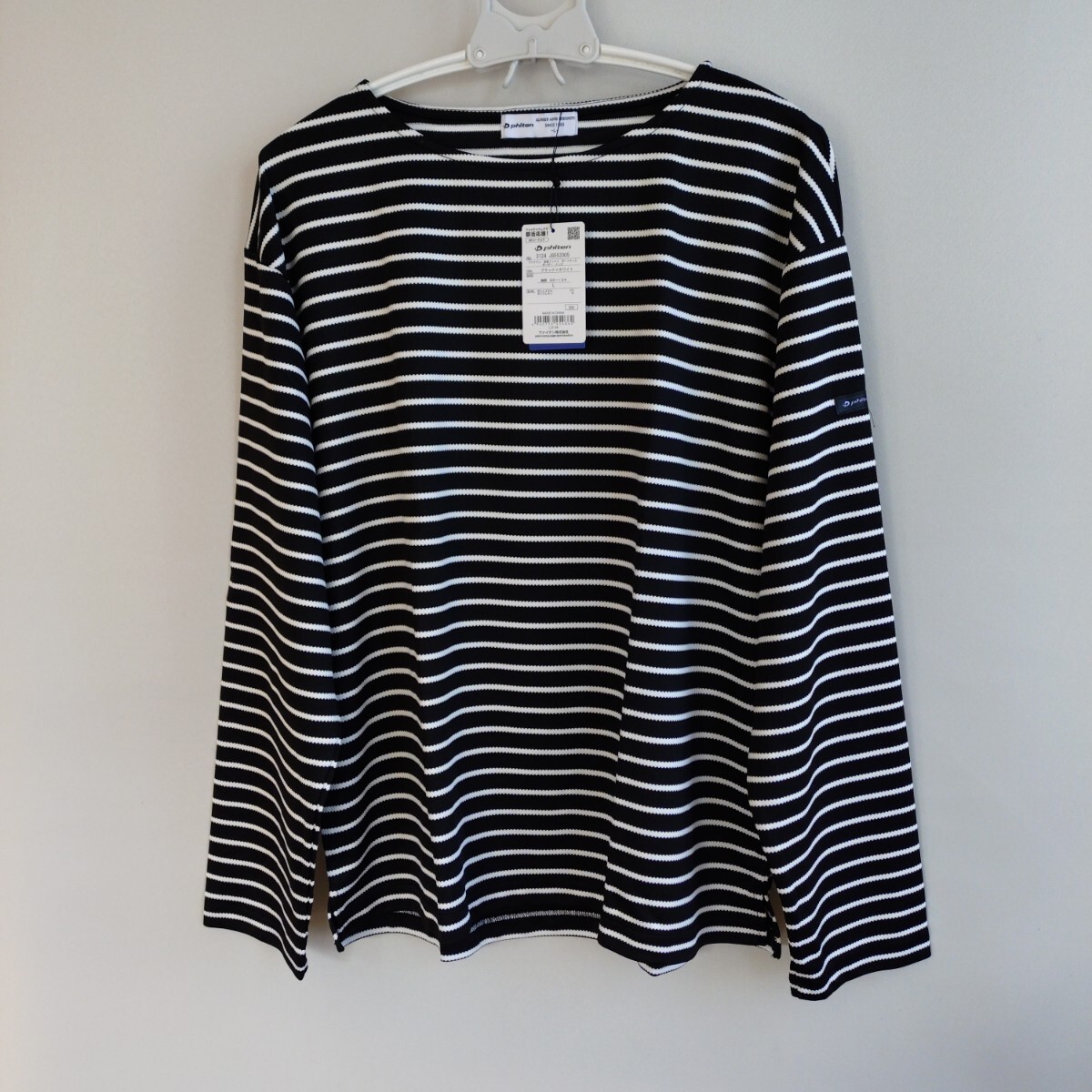 - あ①ファイテン メンズ 七分・長袖カットソー L ブラック×ホワイト