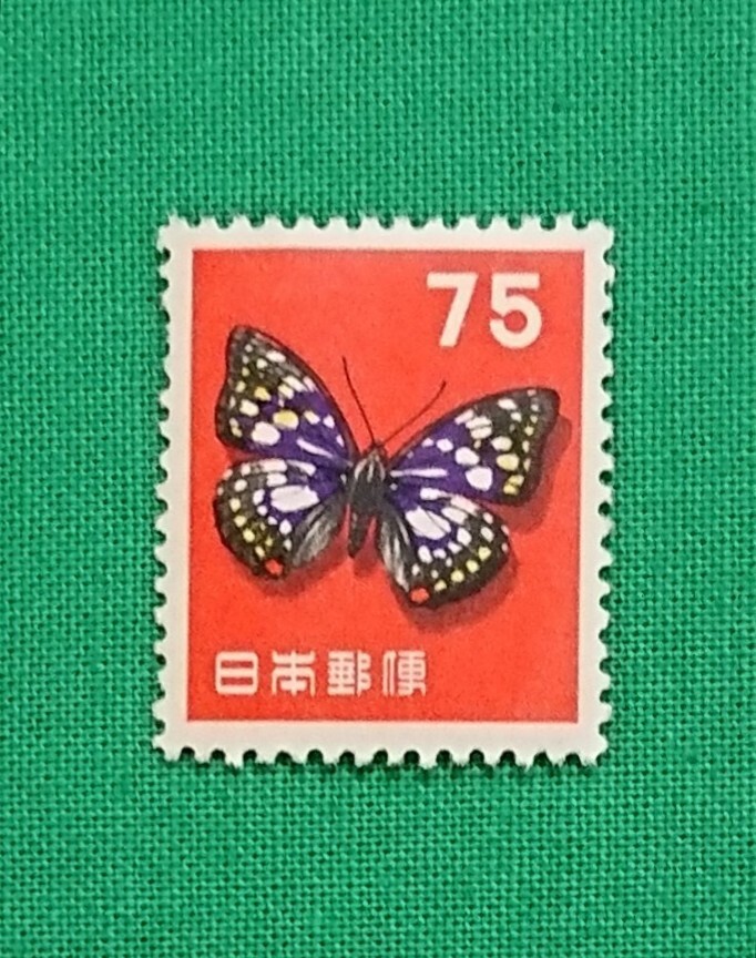 - オオムラサキ/75円/第1次円単位/未使用/NH/美品/シミ無/裏糊良好/1956年/動植物国宝図案/普通切手/昭和切手/No.347