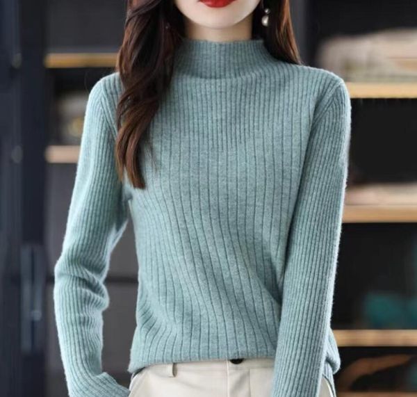 - 新入荷/オシャレ ニットセーター レディース 秋冬 長袖 立ち襟 セーター トップス ニット おしゃれ 大人 上品 着痩せ/緑
