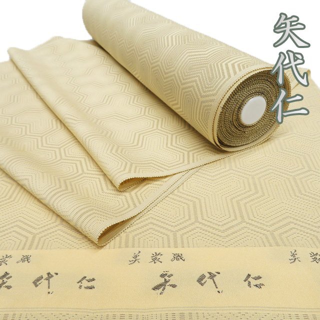 - 反物 コート地 未仕立て 新古品 正絹 美裳織 矢代仁 毘沙門亀甲模様 薄橙色 きもの北條 A1158-3