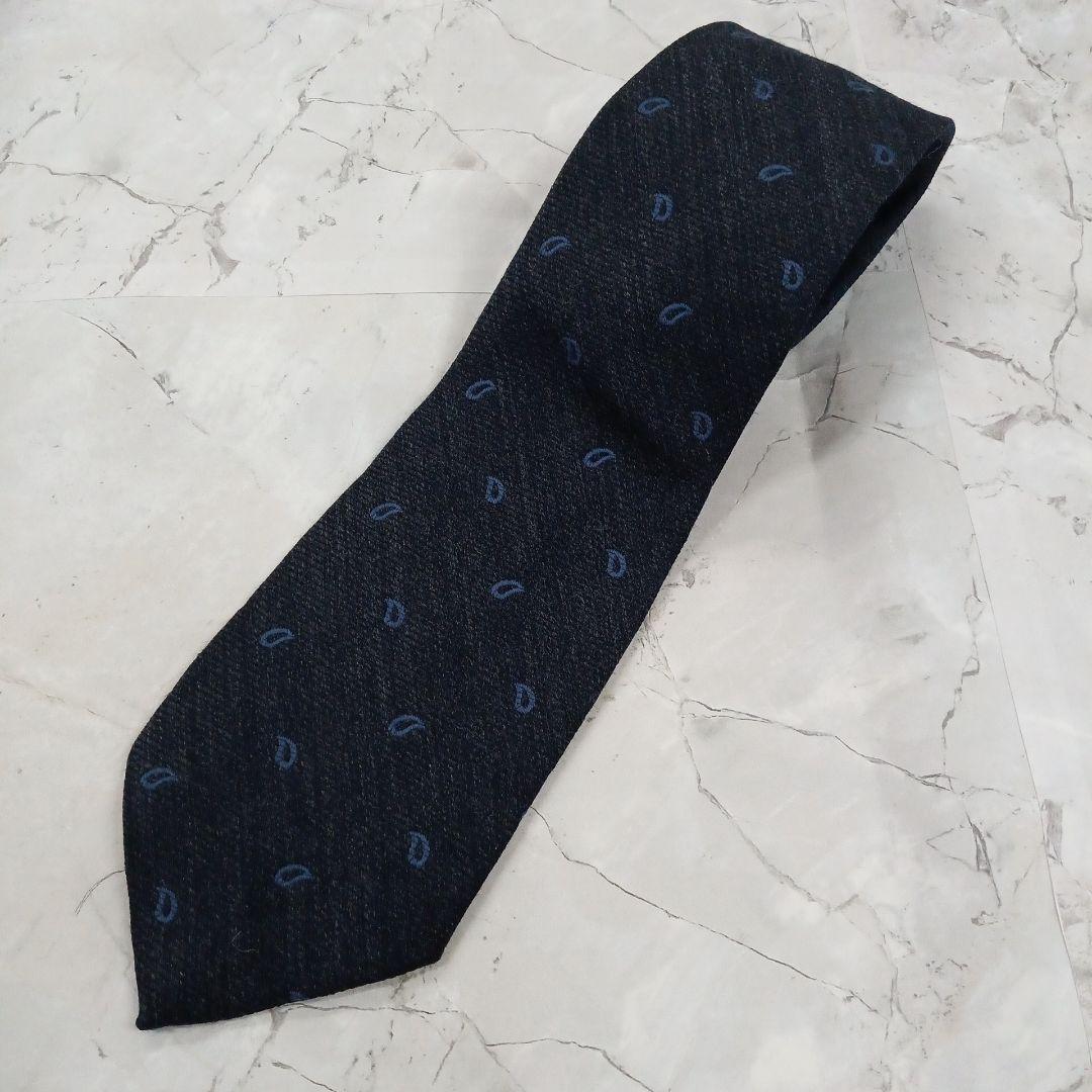 - ファソナブル ネクタイ 紺 小紋柄 絹 羊毛【n644】