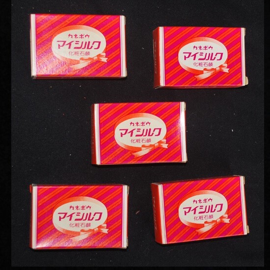 - ●2233● 昭和 固形石鹸コレクション ◆ 「 カネボウ マイシルク 化粧石鹸 」 5 個 ◆ 希少な置き古し品です。!