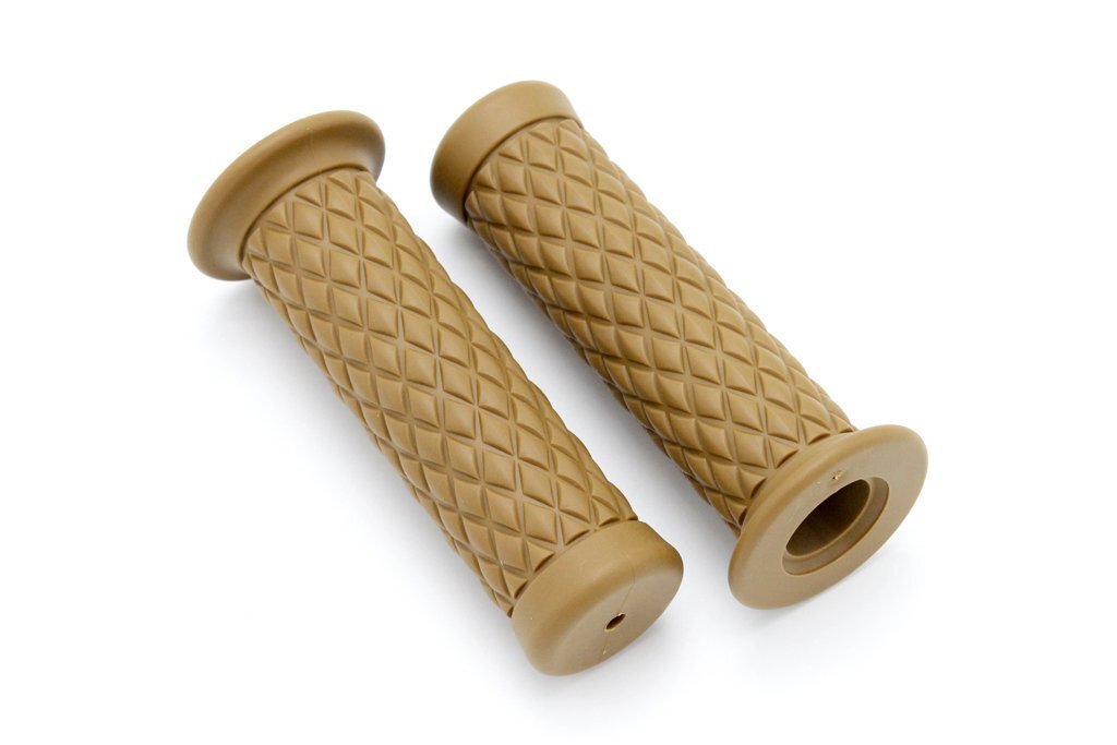 - 送料格安 非貫通 ラバーグリップ 左右セット ダイヤ柄 カーキ ブラウン ゴムグリップ カスタムグリップ エンド付き 汎用 22.2mmハンドル用