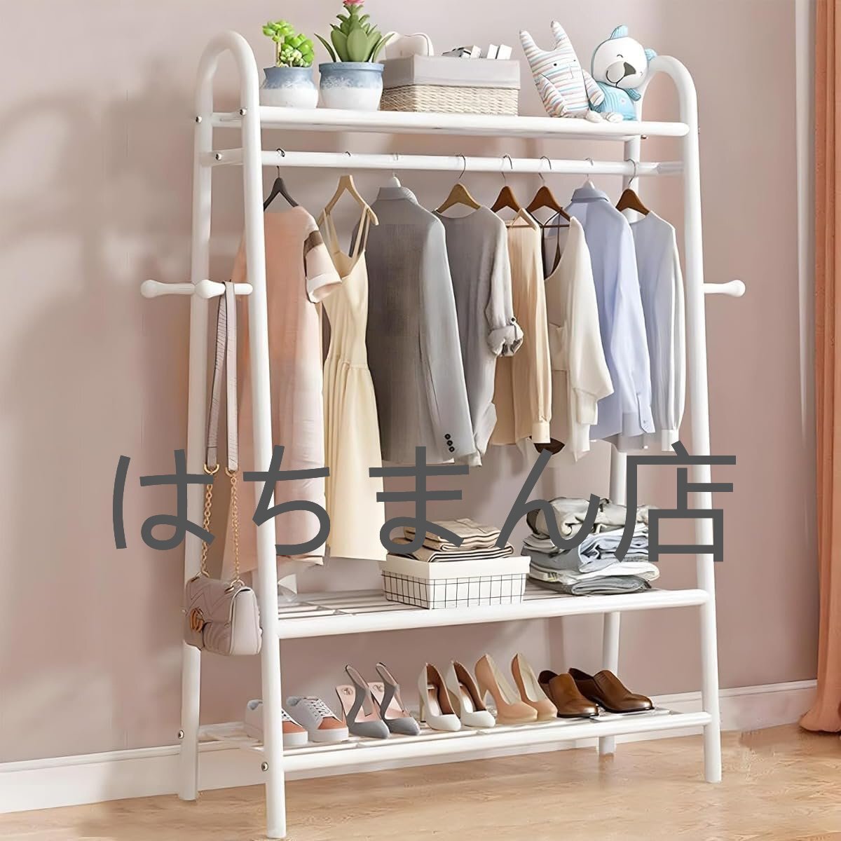 > ハンガーラック パイプハンガーラック 頑丈 洋服ラック 金を太くします 多機能 大容量 ベランダハンガー 衣類収納ラック (白です,120cm)