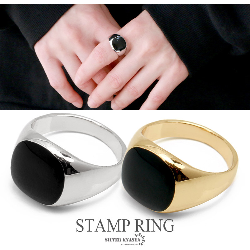 - (シルバー、19号) 印台リング ブラック オニキスリング ゴールド シルバー 2カラー 金色 銀色