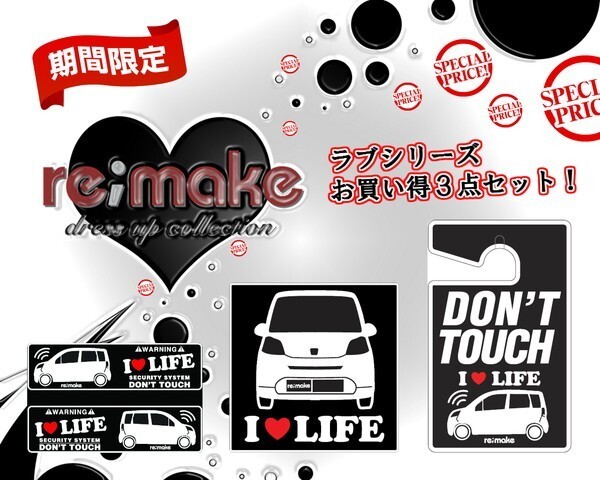 > ゆうパケットのみ送料込 ライフ JC1/2 アイラブ3点セットラブセキュリティシール+ラブキャラシール+ラブセキュリティミラーフッカー