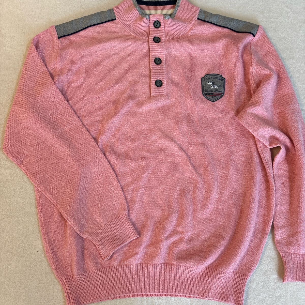 - ☆ VAGIIE バジエ メンズ LL相当 ニットポロ ピンク×グレー 美品 カシミヤ混