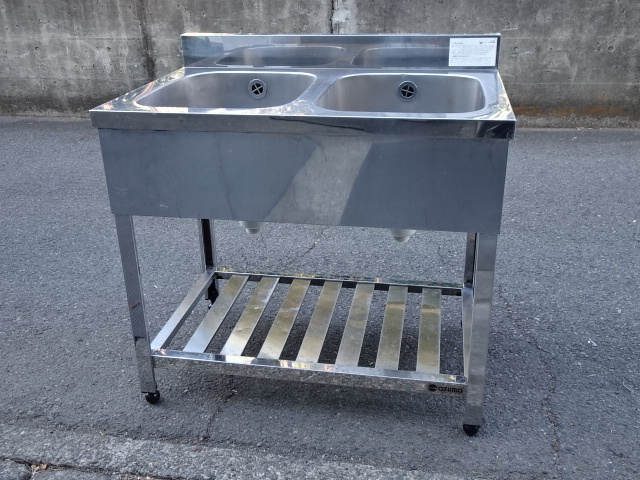 > S0220RS@アズマ★ステンレス★2槽シンク★W900xD600xH800★BG+90★ACK3★厨房専門店