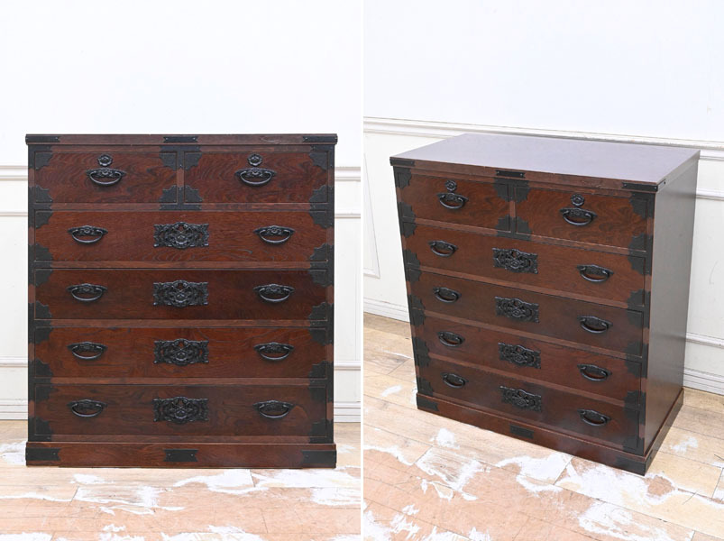 - DA24 ノダ工芸 欅民芸 けやき木目 ハイチェスト 整理タンス 整理箪笥 引出箪笥 金具