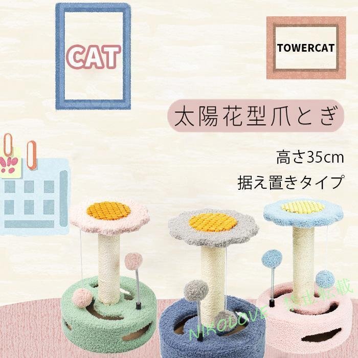 - キャットタワー 据え置きタイプ 太陽花型爪とぎ 高さ35cm 猫爪とぎボード 麻紐 爪とぎポール 猫用品 ペット 鈴入りボール付きMK265
