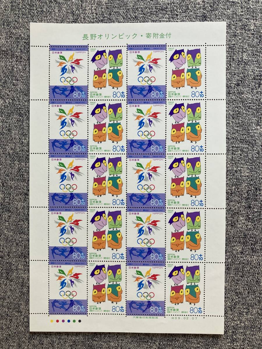 - ★未使用 長野 オリンピック冬季競技大会 寄付金付 エンブレム 競技 スノーレッツ 2種連刷 1997年平成9年 切手シート 80+10円20枚 日本郵便
