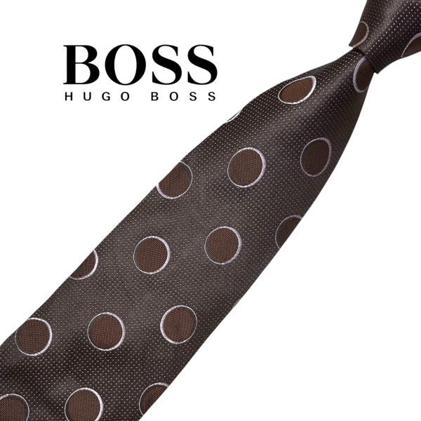 > ★美品★大ドット柄★HUGO BOSS★高級ネクタイ ブラウン系 ヒューゴボス イタリア シルク USED プレス済み ネコポス可 t1357