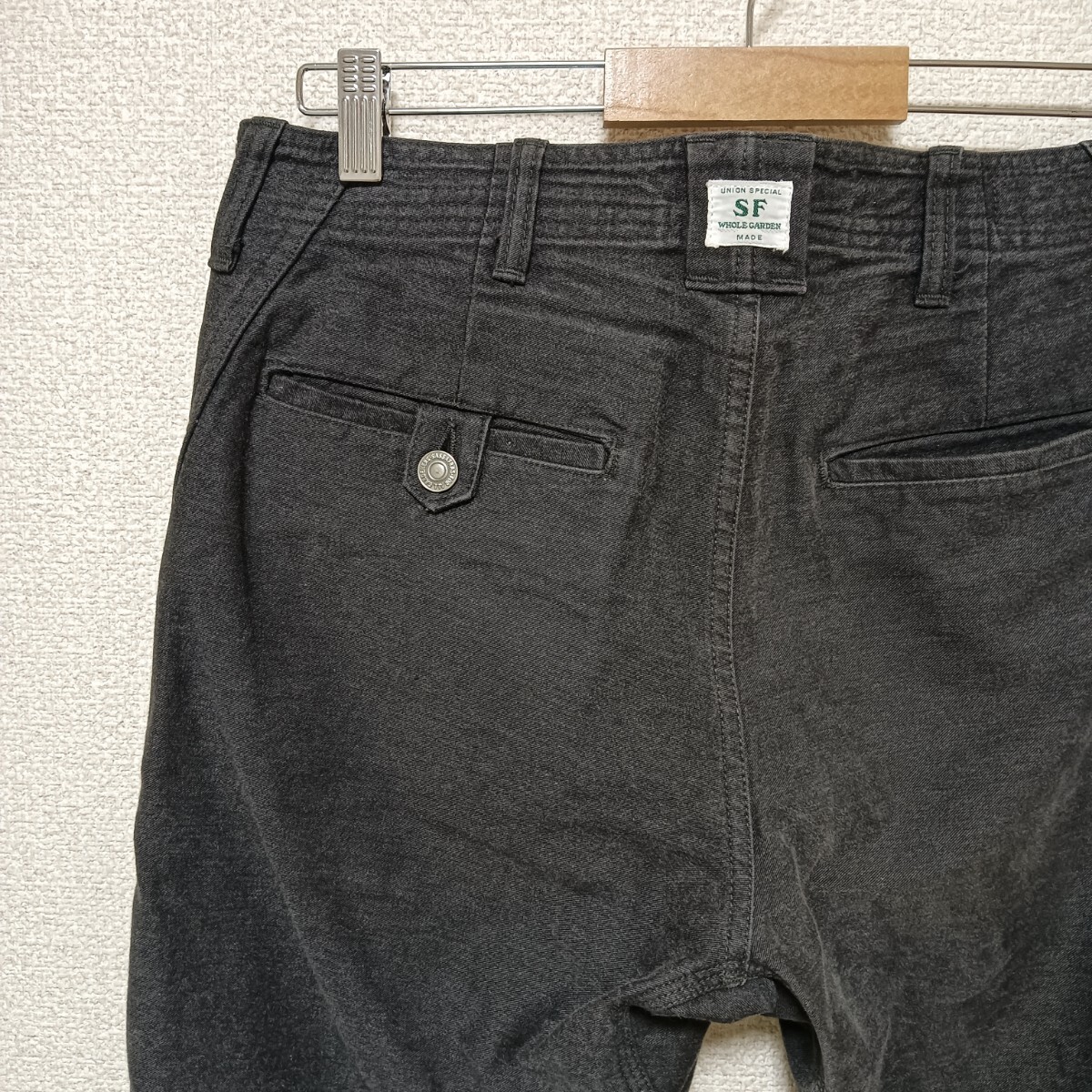 - ★SASSAFRAS ササフラス スプレイヤーパンツ チノパン ワーク ボトムス チャコールグレー サイズM W33〜34 ガーデニング 日本製 古着 USED