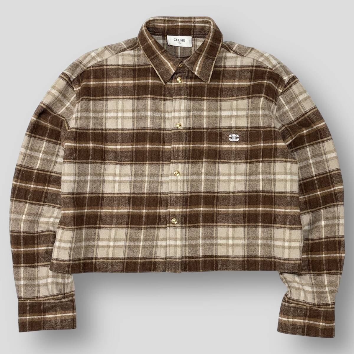 > 極美品 CELINE by Hedi Slimane 23AW チェック クロップドシャツ / カシミヤ 2C878377T.02CU 38 長袖シャツ トリオンフ 金ボタン SSM5171
