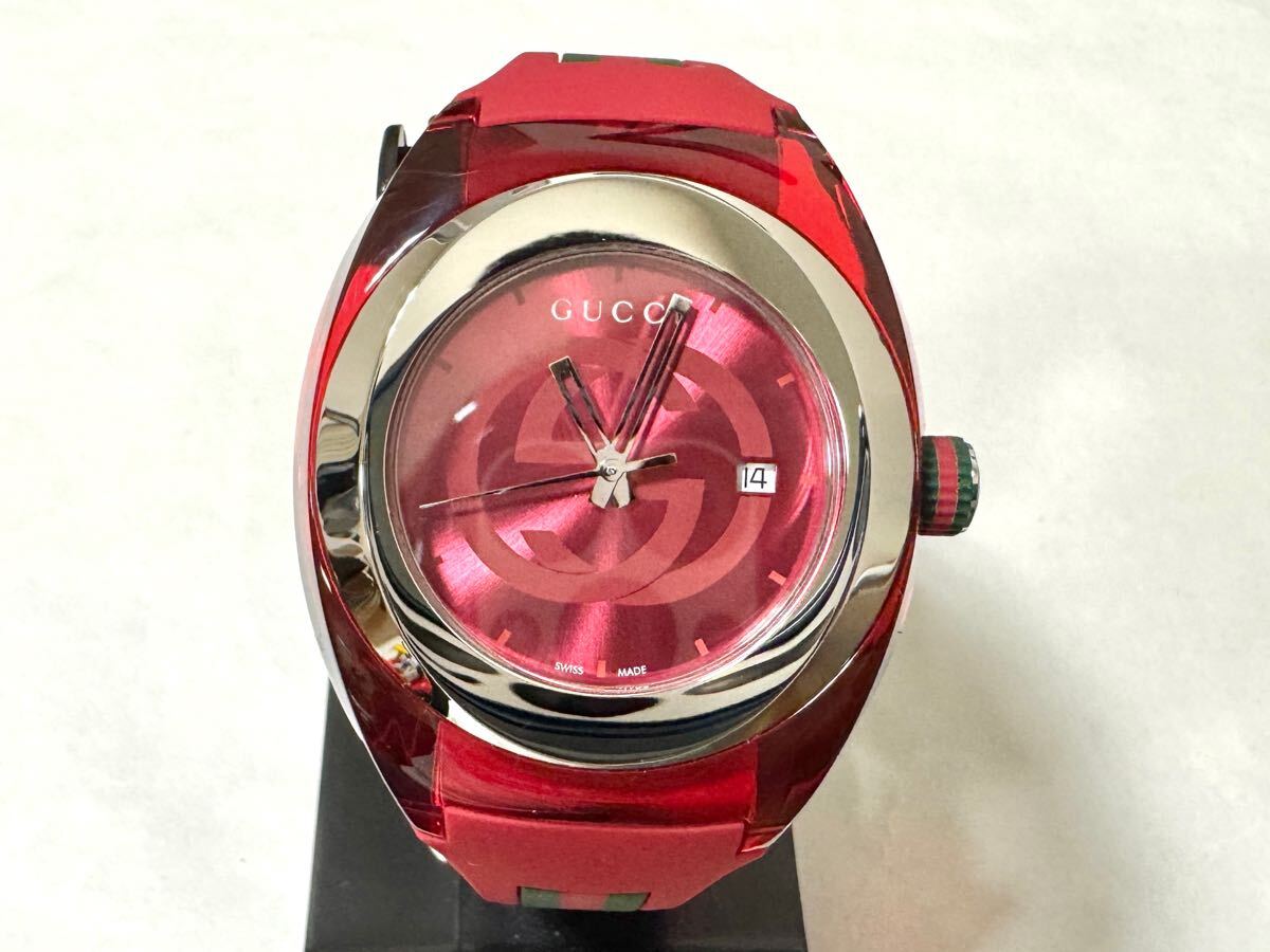- 【質屋 尾張屋商店 東京】 ☆仕上済☆ グッチ 137.1 メンズ腕時計 クォーツ 赤 デイト