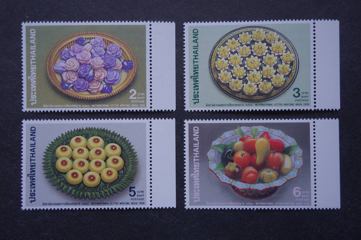 - 外国切手: タイ切手 「1990年 国際文通週間」(タイのデザート) 4種完 未使用