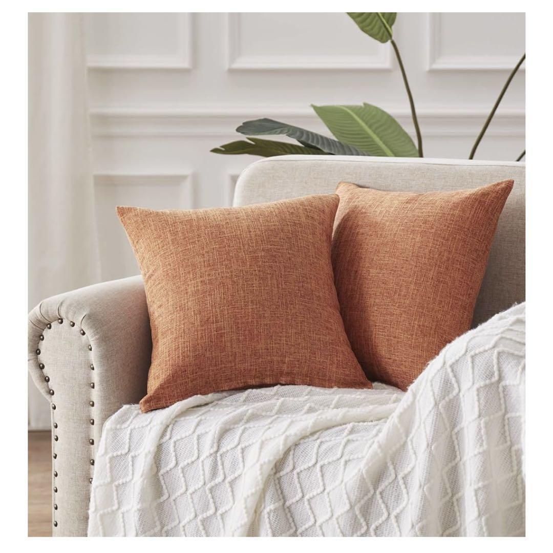 - 座布団カバー 59x55cm 北欧 リネン風 シンプル オレンジ 2枚セット