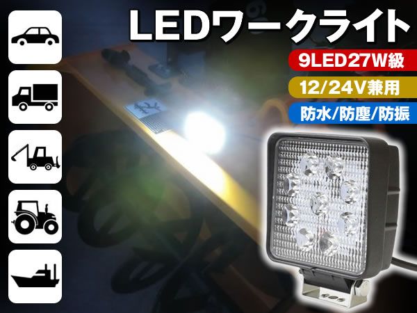 - 24V LEDワークライト LED9個 27W級 角度調節/専用ステー付き 1台