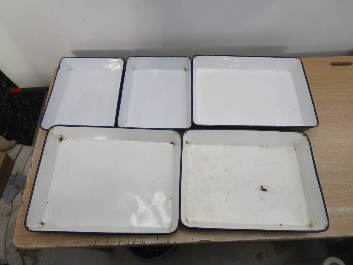 - N570★ホーローバット 5枚 ヴィンテージ雑貨 古道具 レトロ カフェ★アンティーク品