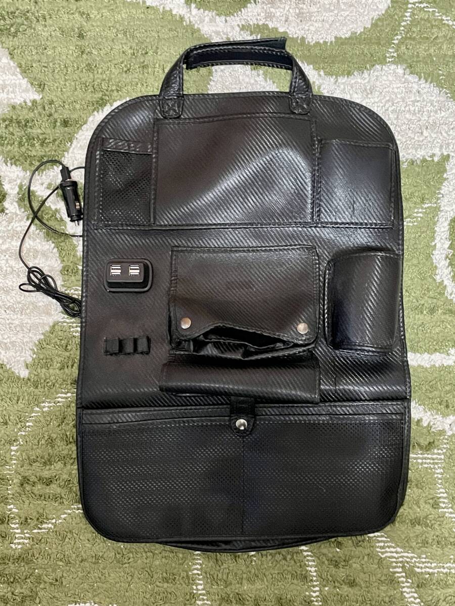 - 自動車 運転席 助手席 背面カバー 小物 収納カバー ティッシュ ドリンクホルダー USB端子 4ケ シガライターソケット付 黒 合皮
