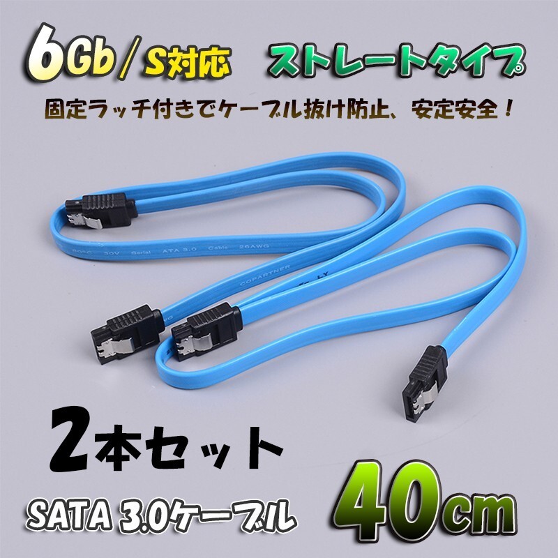 - 新品 SATAケーブル 固定ラッチ付き SATA3.0 速度6Gb/s対応 全国送料無料 ブルーケーブル 【40cm】x2本セット