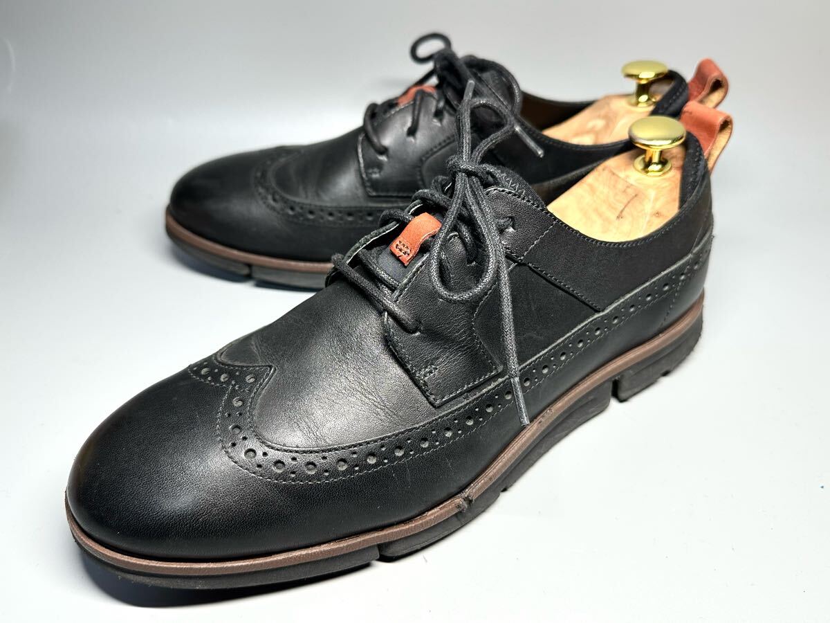 > 【即決】Clarks クラークス メンズ UK7 26cm 黒 スニーカー ウィングチップ ビジネス カジュアル レザー 軽量 靴 21951