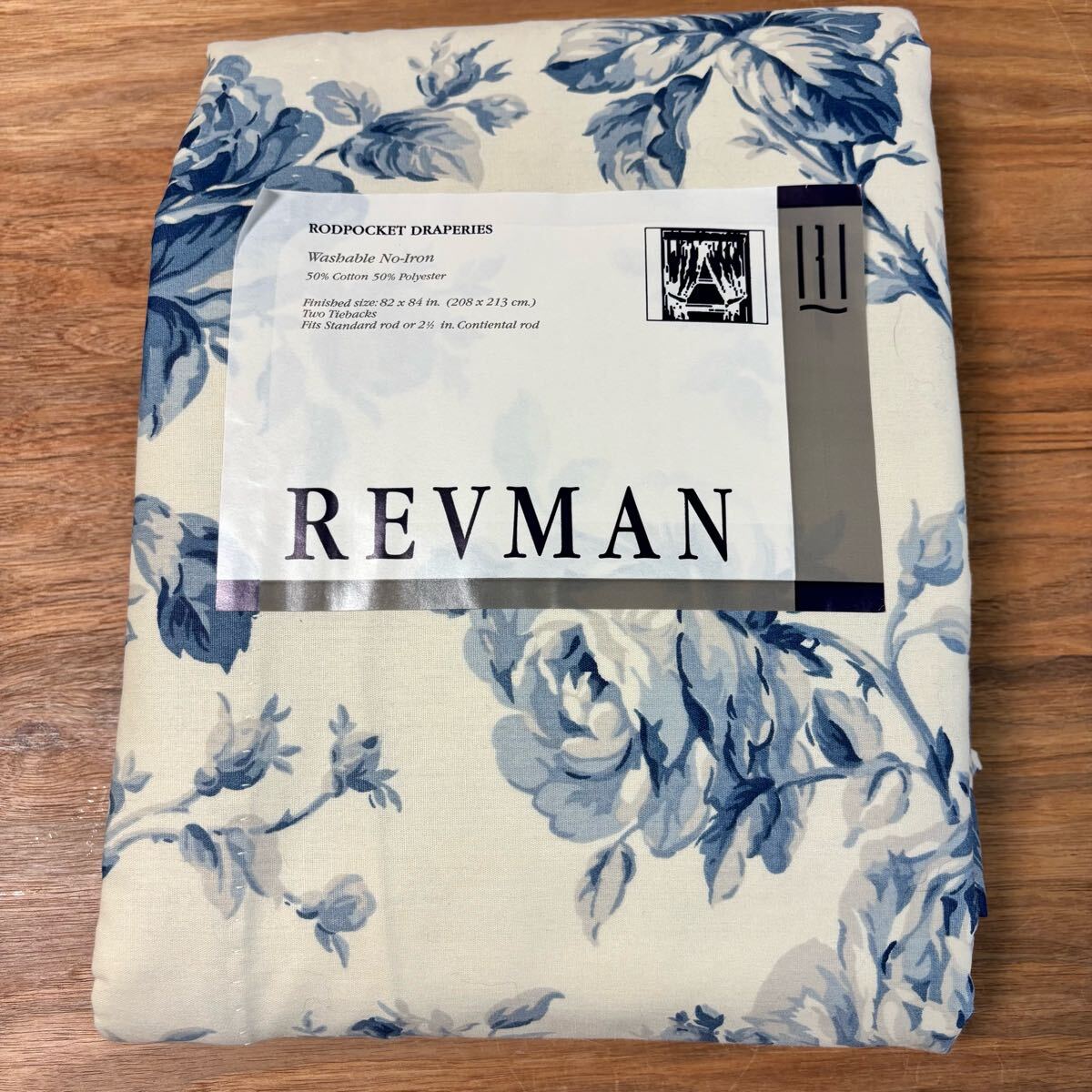 - 未使用◇REVMAN◇ブルーローズ カーテン◇100×178cm◇1枚◇USA製