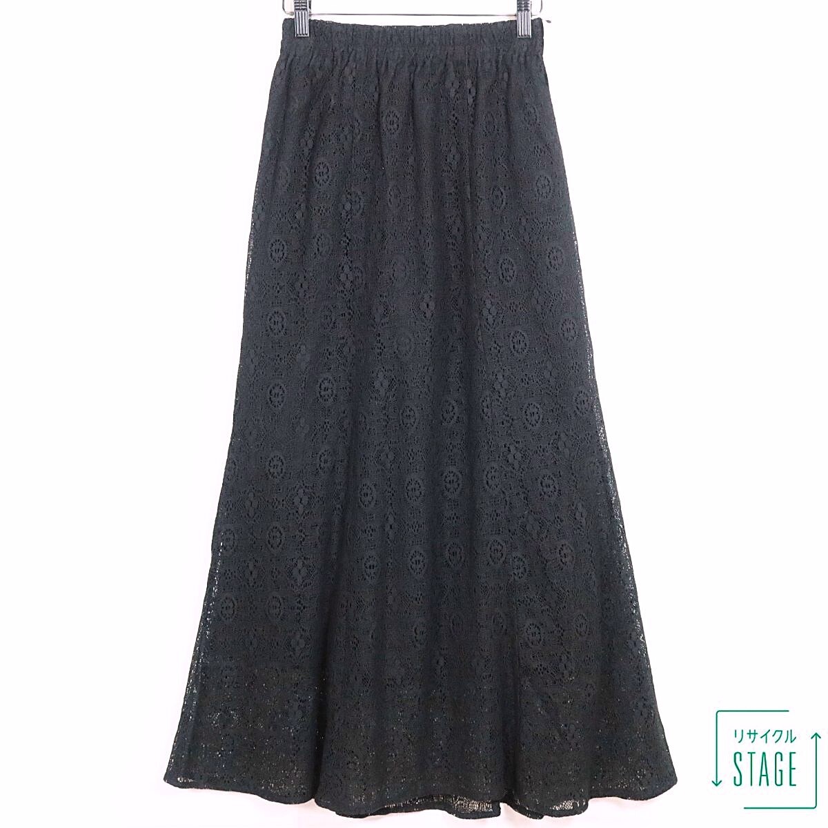 > 【新品紙タグ】LAKOREラコレ★おしゃれスカート 総レース ファブリック サイズM ブラック系 z9884