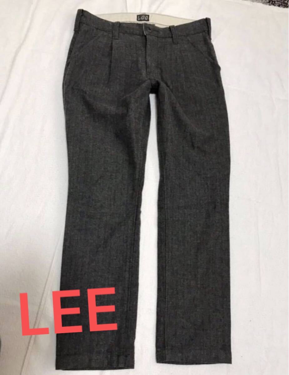 - Lee リー 起毛?パンツグレー 灰 ストレート タック入りパンツ Sサイズ スラックス