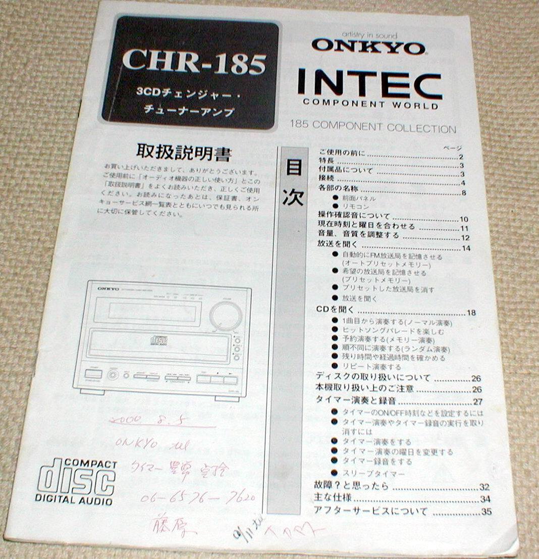 - ONKYO INTEC CHR-185 オンキョー 3CDチェンジャー チューナーアンプ 取扱説明書 送料290円
