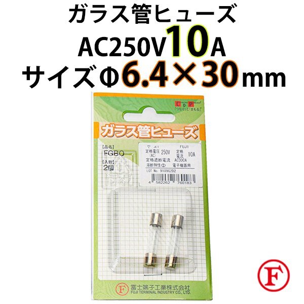- ガラス管ヒューズ AC250V 10A サイズΦ6.4×30mm 1セット(2個)