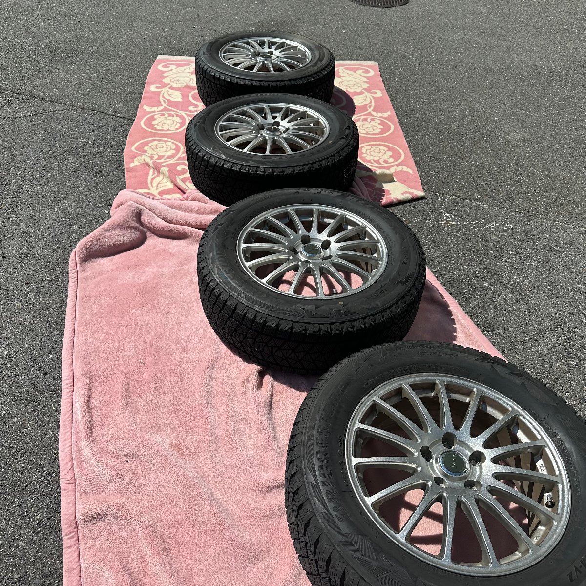 - θOGθ 【家財便Bランク2個口発送】BRIDGESTONE BLIZZAK DM-V2 アルミ付きスタッドレスタイヤ4本 約9部山 15年46週製 θS-250324
