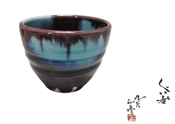 - 《ジャムルK》KKg0318-46◆人間国宝 九谷焼 徳田正彦 三代 徳田八十吉 ぐい呑 酒器 酒盃 共箱