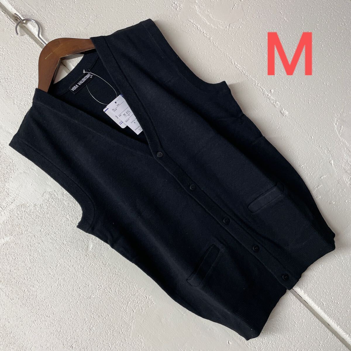 - Mサイズメンズお家で洗えるニットウール混前ボタンベスト黒