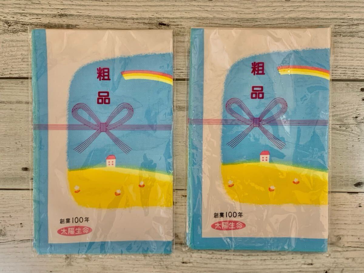 - ランチクロス 2枚 太陽生命 創業100年 粗品 お弁当包み テーブルセンター 綿100% 昭和レトロ 手拭い 希少 レア クロス