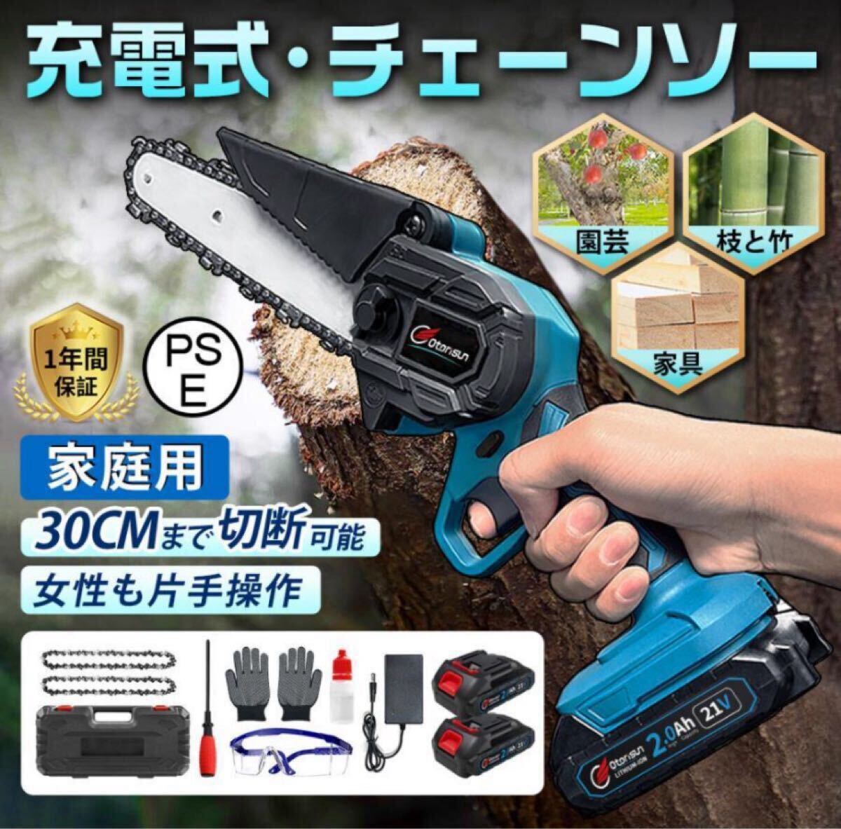 - 【正規品】 チェーンソー 充電式 小型 6インチ マキタ バッテリー互換 電動ノコギリ ハンディチェーンソー 高速切断 楽々 切れる