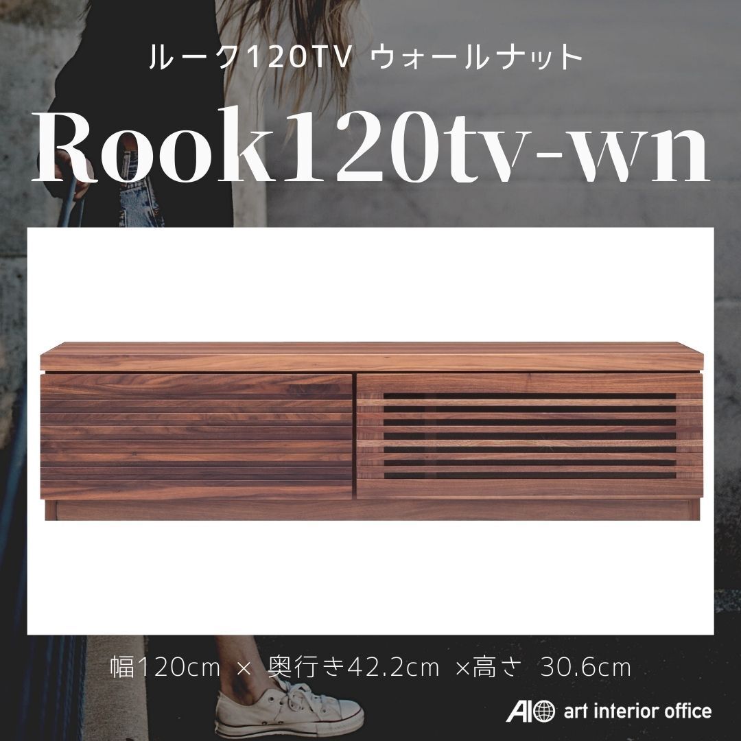 - テレビボード AVボード ローボード 幅120cm 無垢材 ウォールナット ミッドセンチュリ― ROOK ルーク 天然杢 ROOK120TV-WN