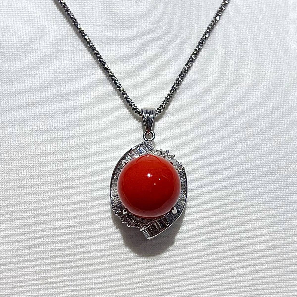 - Pt850 天然 珊瑚 サンゴ ダイヤ ネックレス 13.7mm D0.90ct 15.2g 45cm 鑑別書 赤色 レディース アクセサリー 美品