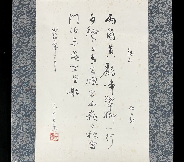 - CM7903[真作]久志貞真「三行書」掛軸 紙本 書/日本の音楽家 音楽評論家 書画骨董の研究者 鑑識家