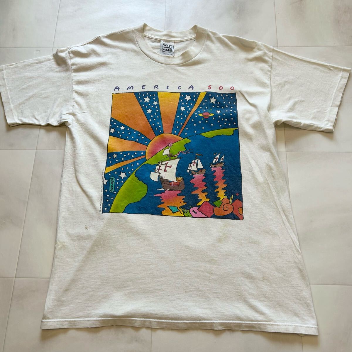- 希少 90s USA製 Peter Max 1992 Three Ships Sailling AMERICA 500 ビンテージ プリント 半袖Tシャツ