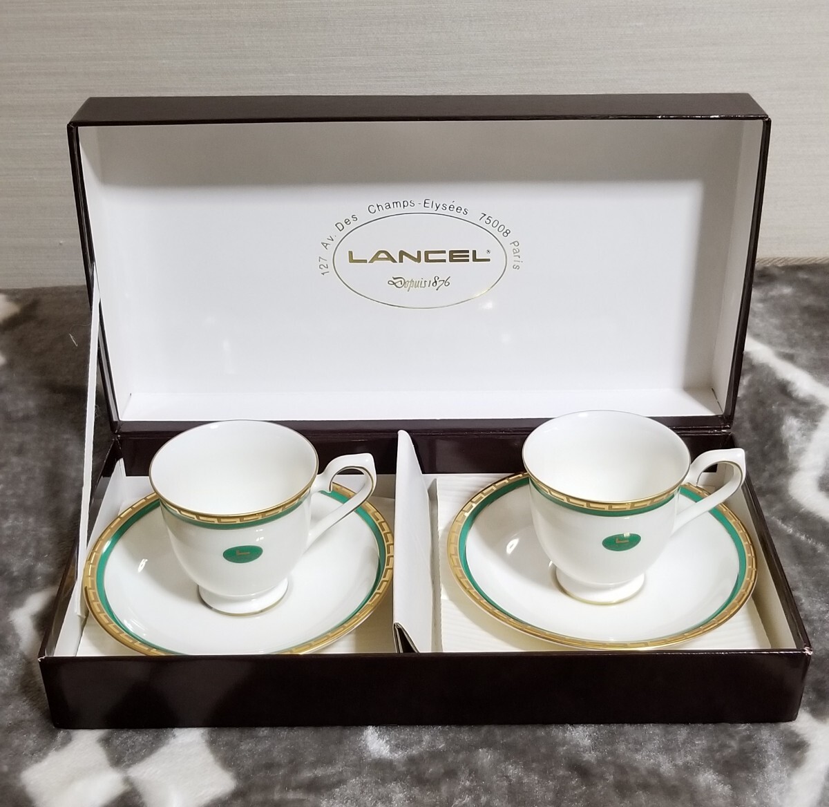 - T-386【美品】LANCEL カップ & ソーサー ペアコーヒーc/s L-2005 陶磁器 ランセル/パリ 洋食器 MAEBATA CHINA 豪華な金彩縁 保管品