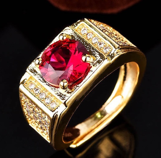 - ★超豪華 指輪 メンズ 大粒 ダイヤモンド ルビー キラキラ輝く 18KGPリング フリーサイズ