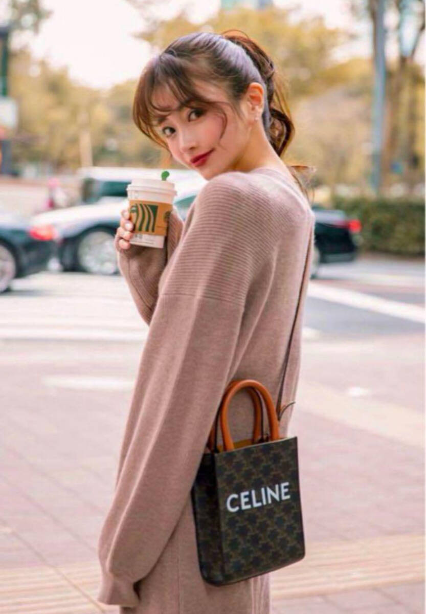> 【美品】CELINE トリオンフ ミニ バーティカル カバ 2way ショルダーバッグ ハンドバッグ タン ダークブラウン