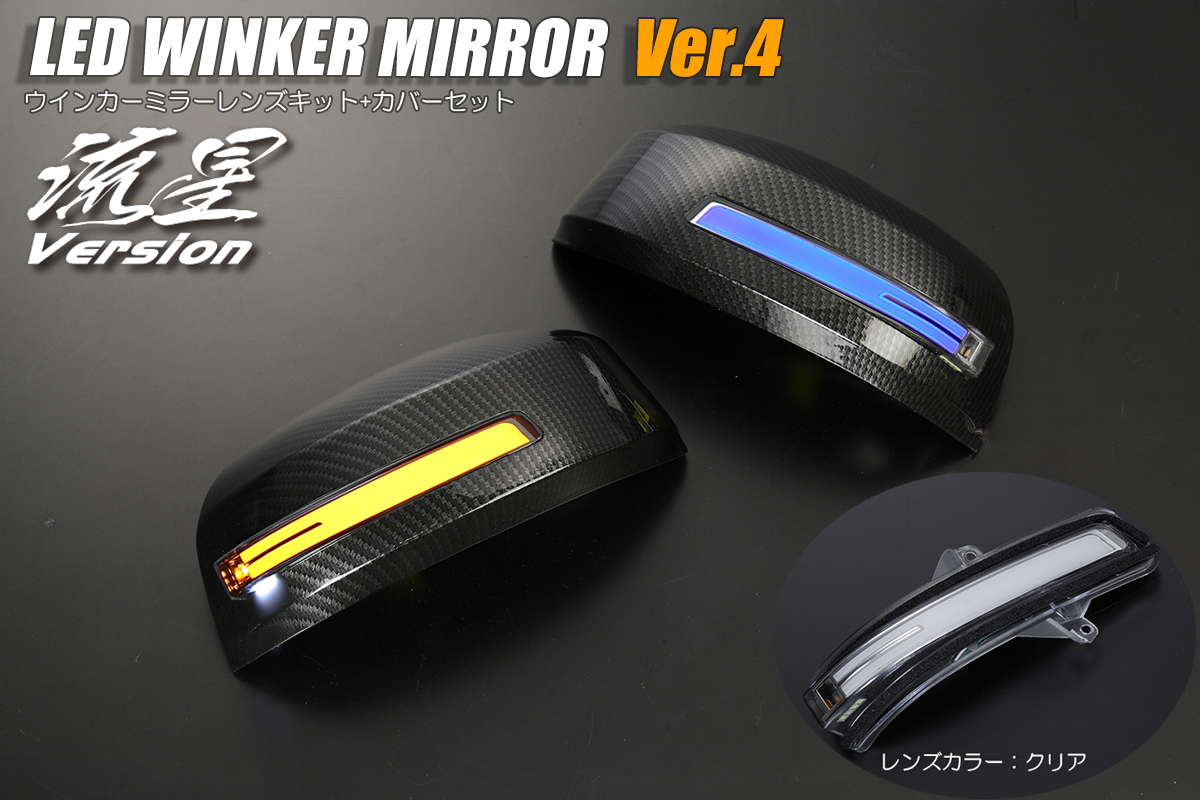 > [オープニング付きVer.4] JJ1/JJ2 N-VAN/N-VAN +STYLE FUN/COOL LED ウインカーミラー [カーボン+クリア/青光] カバー交換式 ドアミラー 流