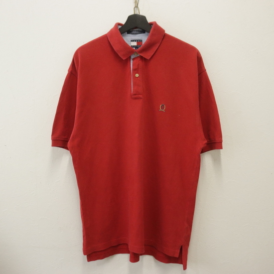 > S359 2000年代製 TOMMYHILFIGER トミーヒルフィガー 半袖ポロシャツ■00s 表記Lサイズ 赤 カノコ アメカジ ストリート 古着 激安 古着御
