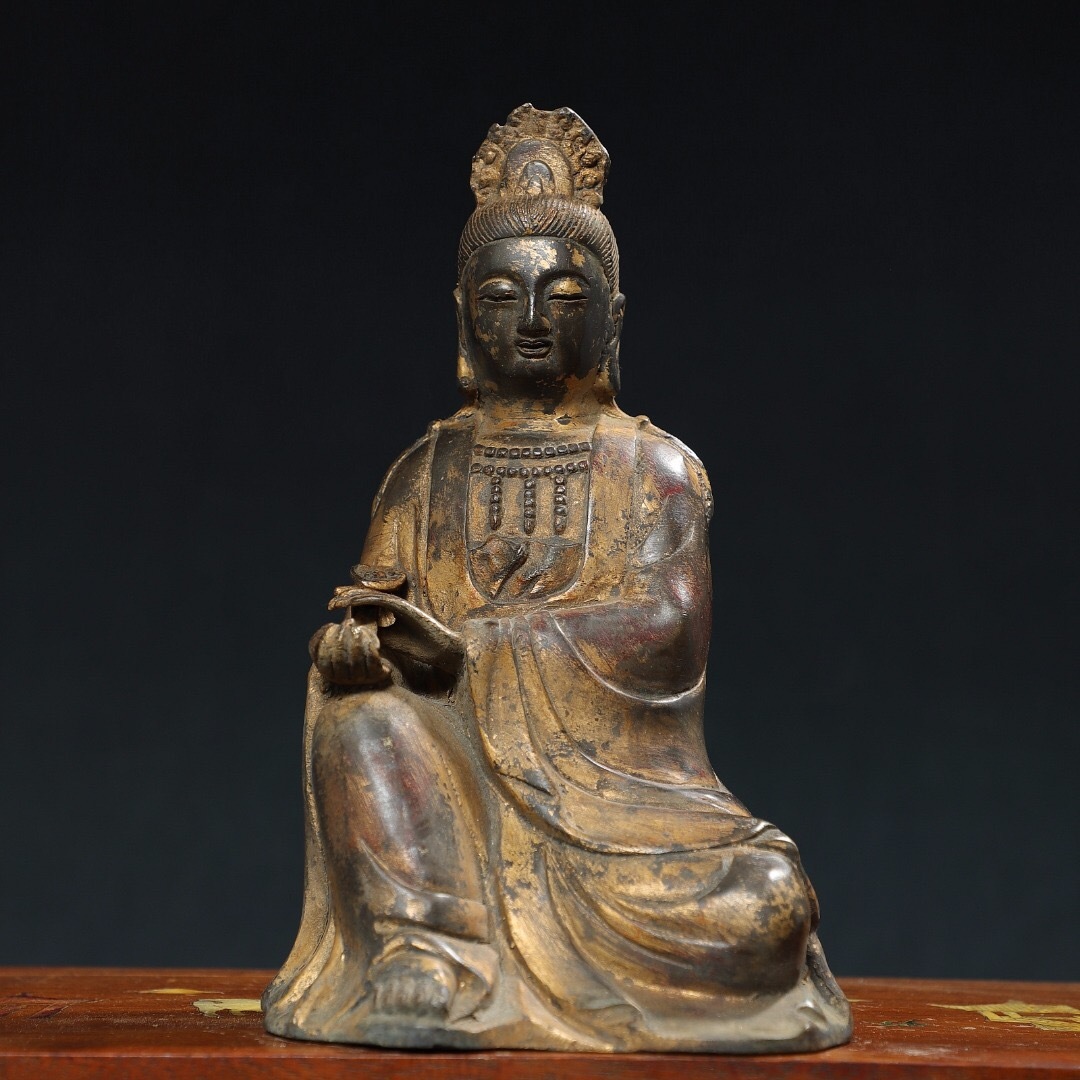 - 『館蔵珍品 銅製 拓金 如意觀音像』置物 賞物 貴重物品 収蔵品 中国古美術