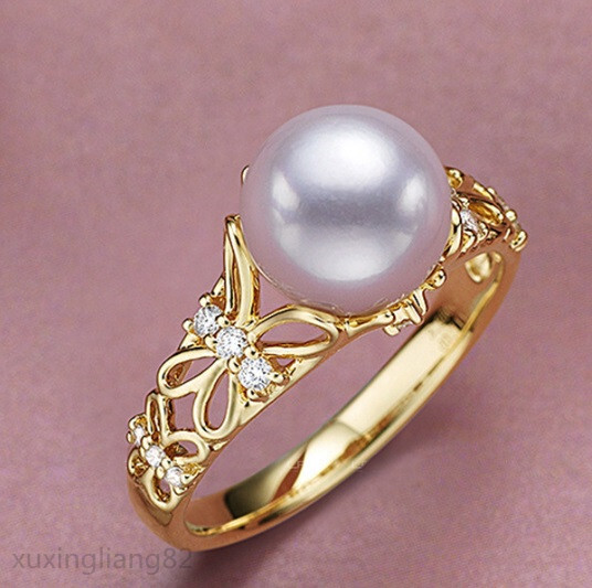 - 綺麗 淡水真珠パール キュービックジルコニア 蝶柄 指輪 レディース キラキラ 輝く リング メッキ アクセサリー フリーサイズ