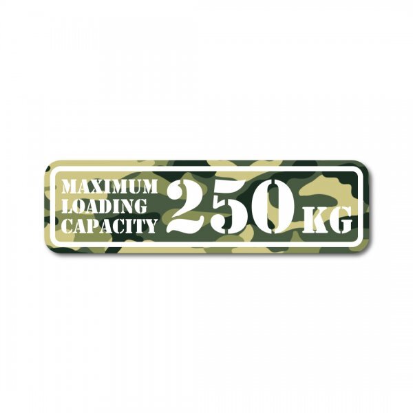 - 最大積載量 迷彩 ステンシル文字 250kg 英語 ステッカー 新品 国内生産 英語 強粘着 マットラミネート 軽自動車 普通車 オシャレ